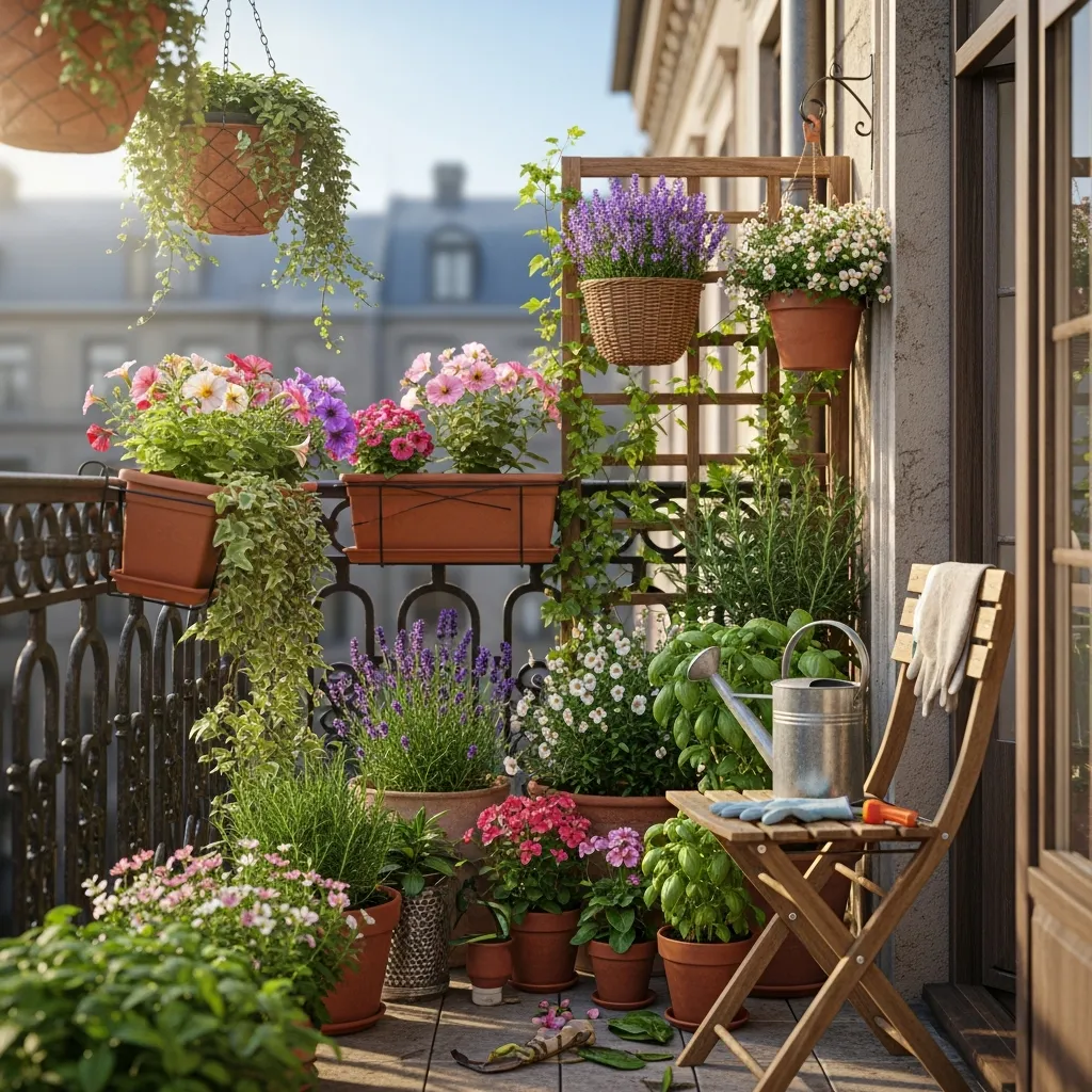 Perfect for small balconies up to 6 square meters. This package includes a curated selection of compact flowering plants, herbs, and decorative containers arranged to maximize your space while creating visual impact.