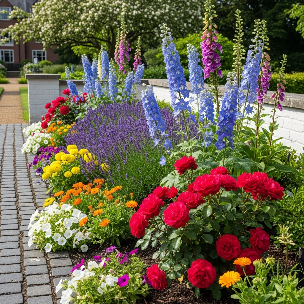 Ideal for front yards or garden borders. Transform a bed measuring up to 12 square meters with perennials and seasonal annuals chosen for continuous blooming throughout the growing season.